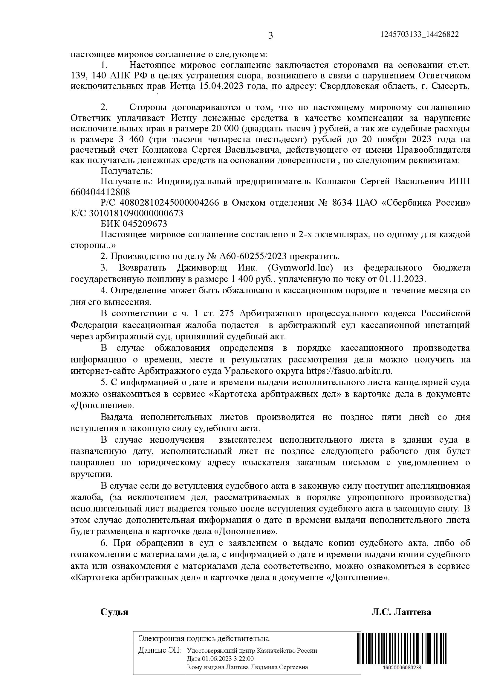 «Gymworld Inc» (Джимворлд Инк.) обратилась в Арбитражный суд г. Екатеринбург с иском к Индивидуальному предпринимателю о взыскании компенсации за нарушение исключительных прав в размере 50 000 руб.